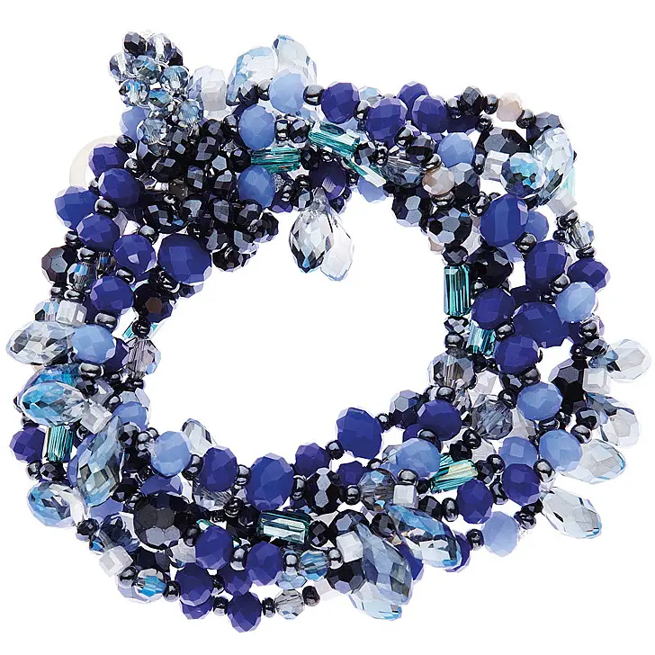 Bracciale Con Cristalli, Perline E Strass di colore Blu. Gioiello Del Diametro Di 7 Cm.