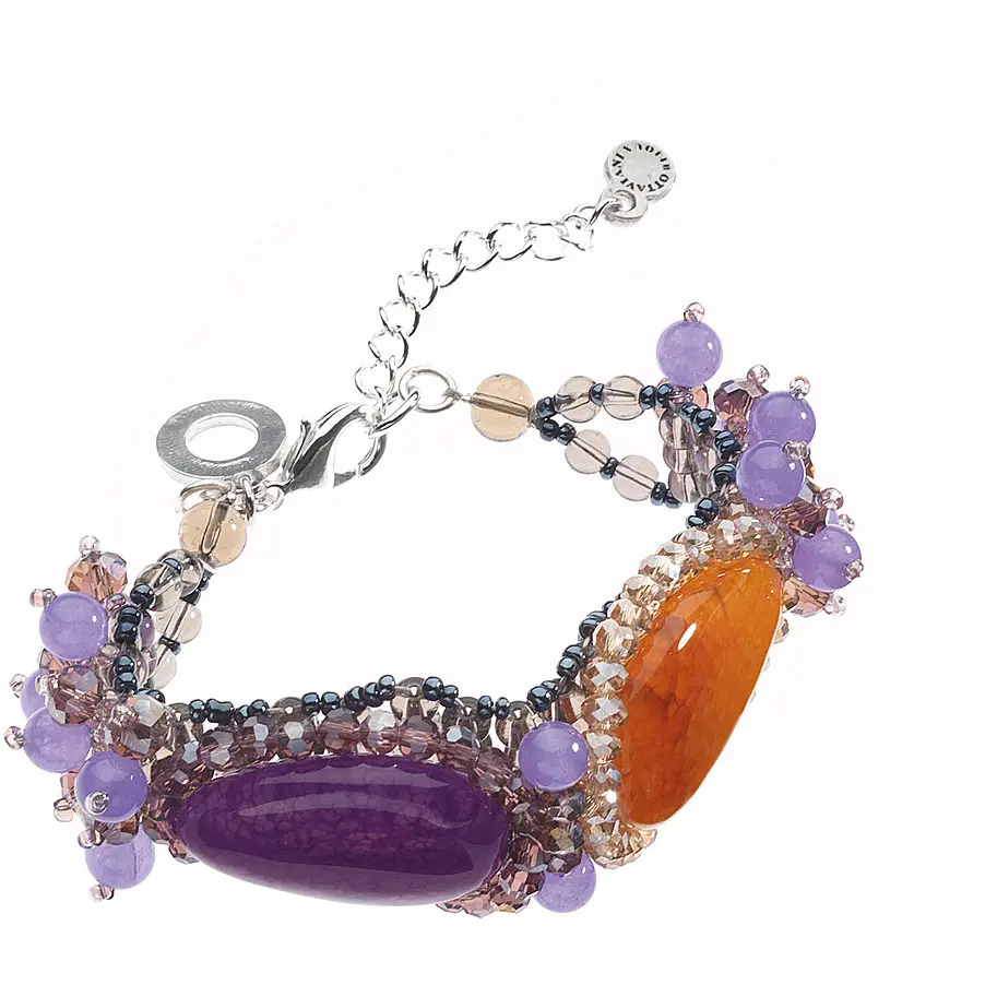 Bracciale Con Agata, Cristalli E Chiusura In Metallo Argentato. Gioiello Della Lunghezza Di 21 Cm. Referenza: 500107B
