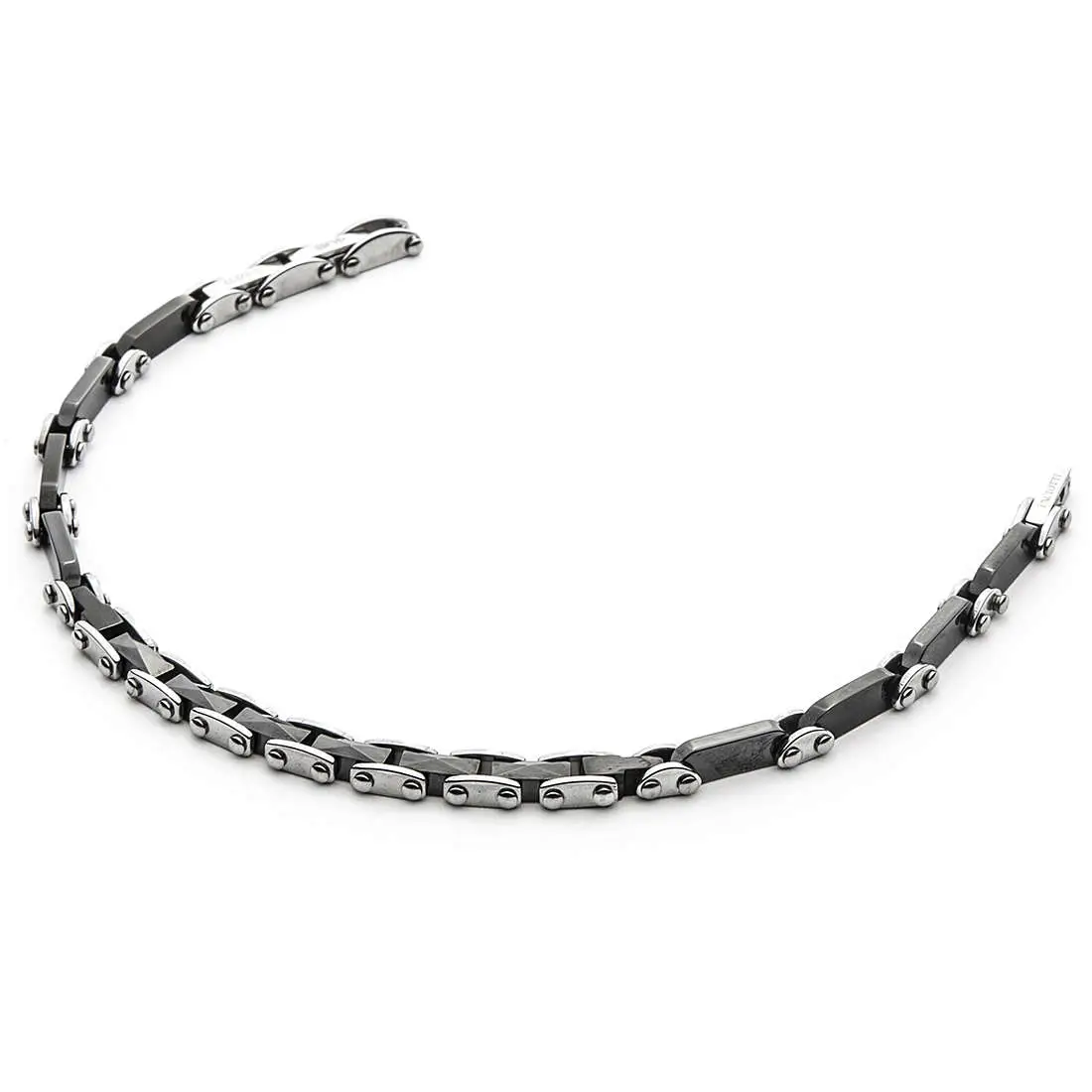 Realizzato in acciaio 316l anallergico brunito e ceramica nera con finitura acciaio. La sua lunghezza รจ di 21 cm con chiusura a maglia.