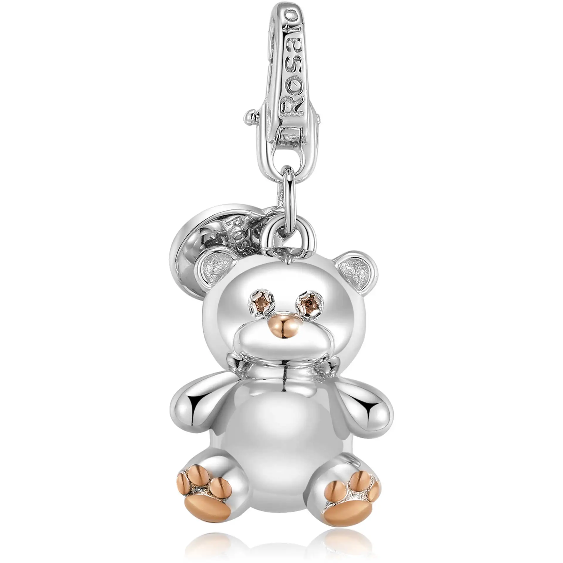 Charm In Argento 925 Con Particolari Placcati Oro Rosa 18 Kt E Zirconi, Con Orsacchiotto.