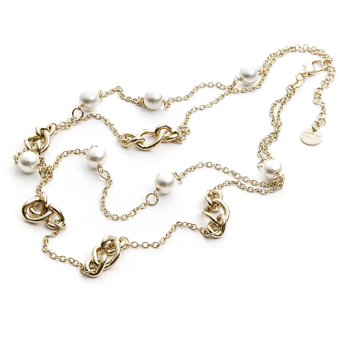 Collana Da Donna Di 4Us Cesare Paciotti Della Collezione Gold Pearl 4UCL3639W. Gioiello Realizzato In Ottone Con Galvanica Di Colore Oro E Perle Bianche. Lunghezza: 60 Cm + 5 Cm Di Riduzione. Chiusura A Pappagallo.