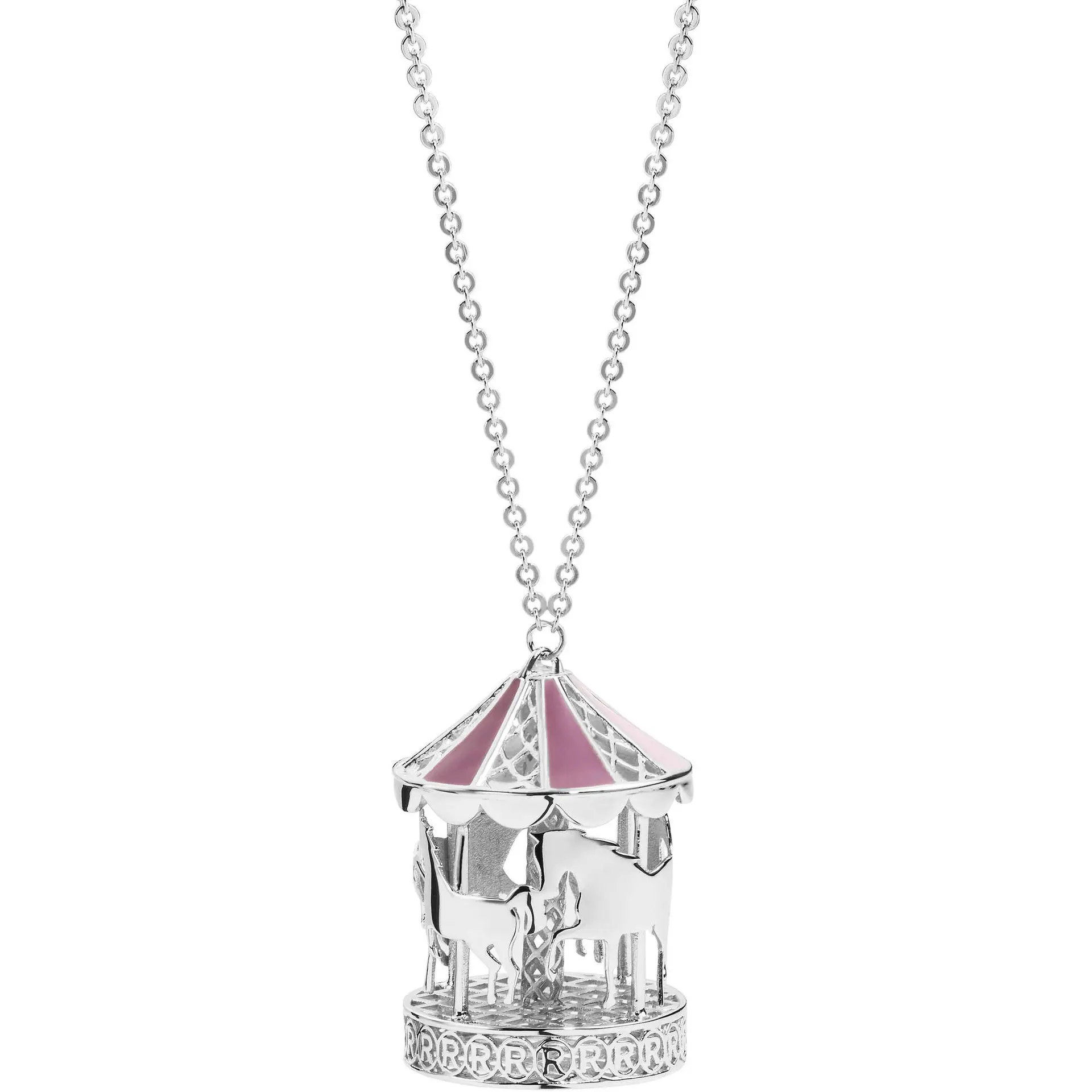 Collana In Argento Con Pendente A Forma Di Giostra, Con Giostra Rosa.