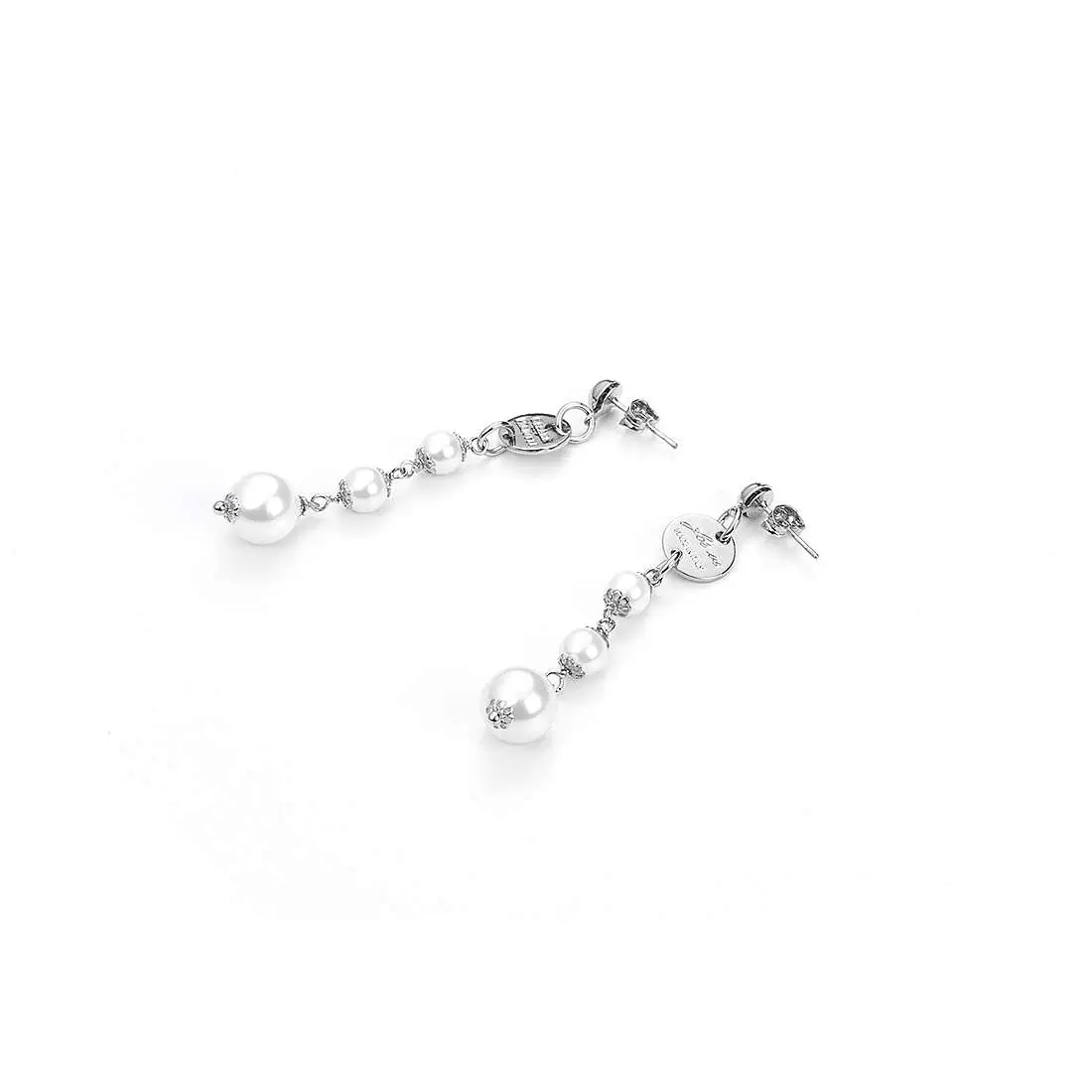 Orecchini Da Donna Di 4Us Cesare Paciotti Della Collezione Falling Time 4UOR2573W. Gioiello In Ottone E Perle Bianche. Chiusura: A Lobo. Misura: 6 Cm.