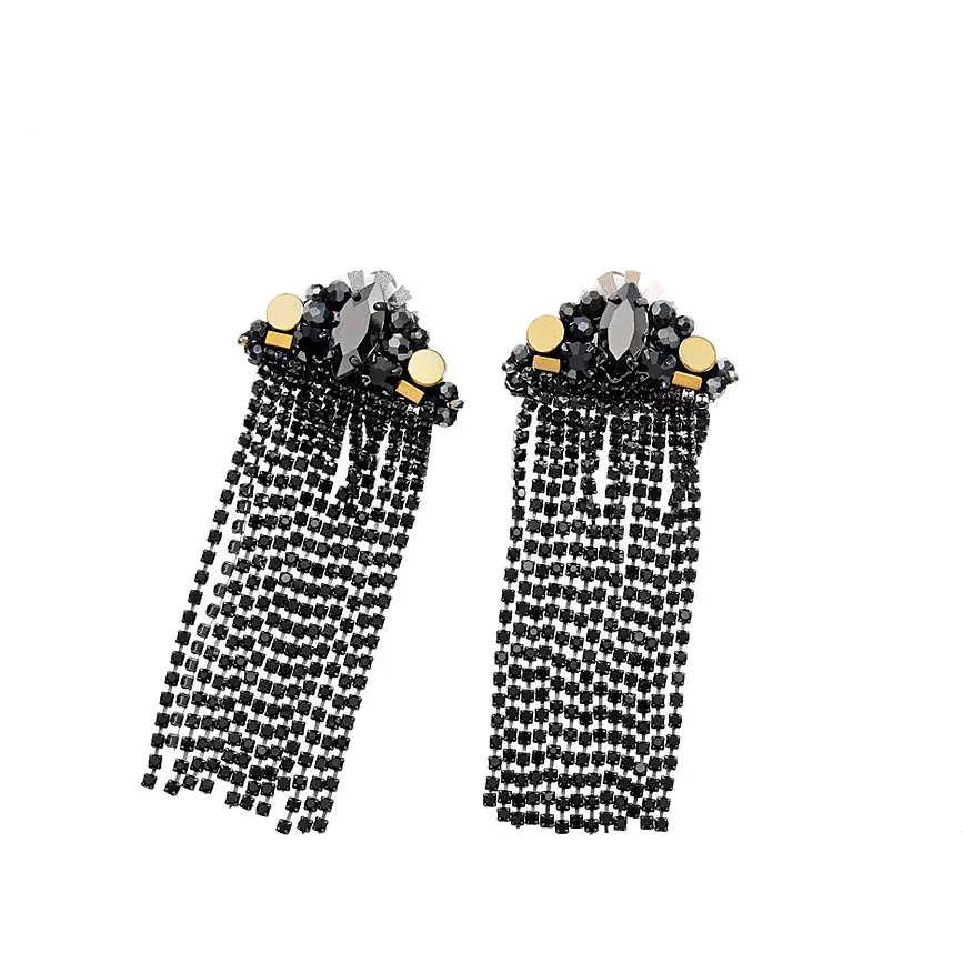Gioiello Realizzato In Lega Di Zinco Con Placcatura Argento, Impreziosito Da Perline, Cristalli E Strass di Colore Nero. Gioiello Di Dimensioni: 3,5 X 8,4 Cm Con Chiusura A Clip.