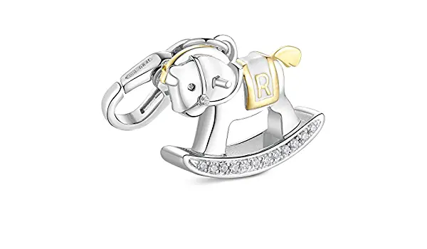Rosato Charm My Toys Cavallo a Dondolo Argento 925 particolari Placcato Oro 18 kt Smaltato Bianco e Zirconi